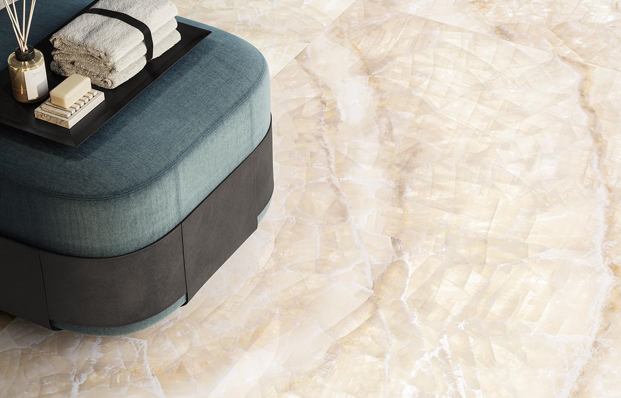 These distinctive slabs define the identity of refined, luxurious interiors—equally suited to grand architectural statements or intimate, atmospheric spaces—evoking a sense of elegance and allure. The collection is available in High Polished Rectified finishes, and offered in two large formats 48×110″ and 48×48″, designed to create striking, cohesive environments. Two decorative options enrich the range, giving architects and designers even more freedom to push creative boundaries and explore new design possibilities.