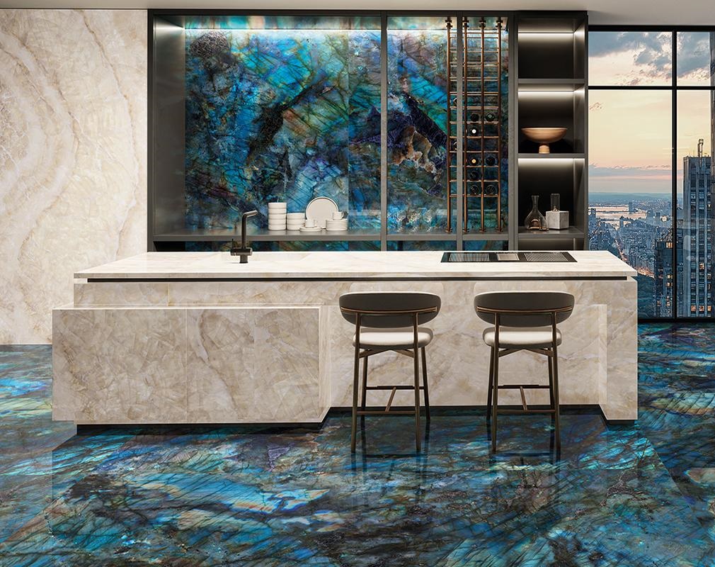 These distinctive slabs define the identity of refined, luxurious interiors—equally suited to grand architectural statements or intimate, atmospheric spaces—evoking a sense of elegance and allure. The collection is available in High Polished Rectified finishes, and offered in two large formats 48×110″ and 48×48″, designed to create striking, cohesive environments. Two decorative options enrich the range, giving architects and designers even more freedom to push creative boundaries and explore new design possibilities.
