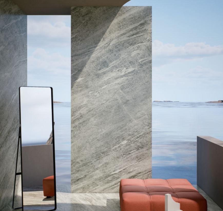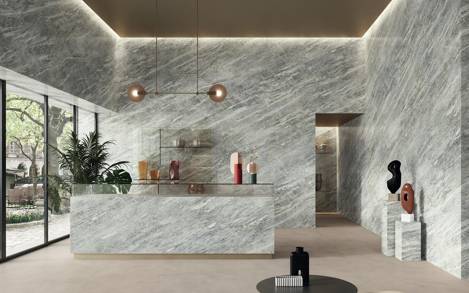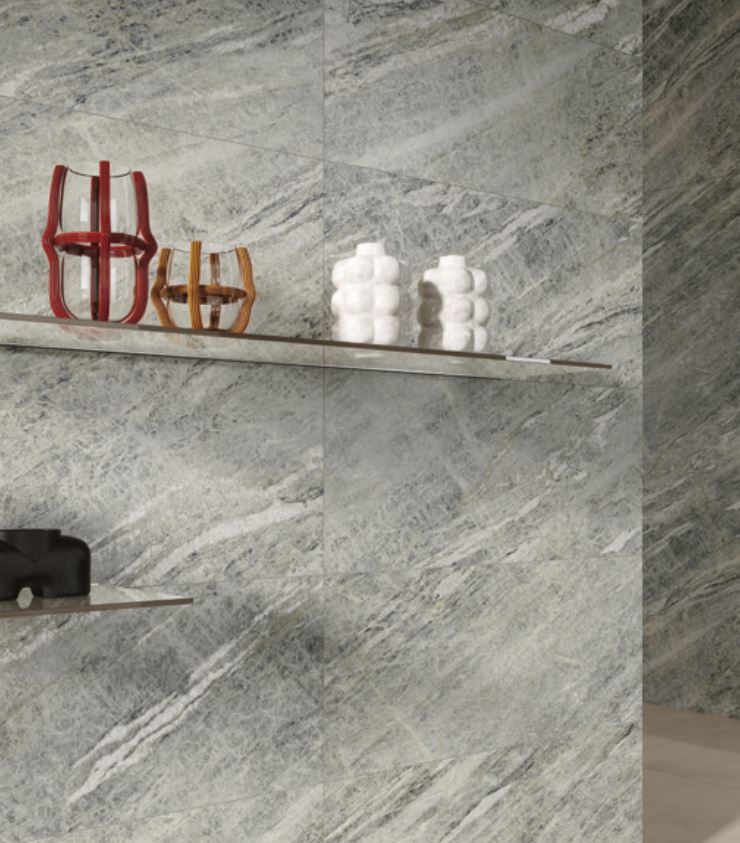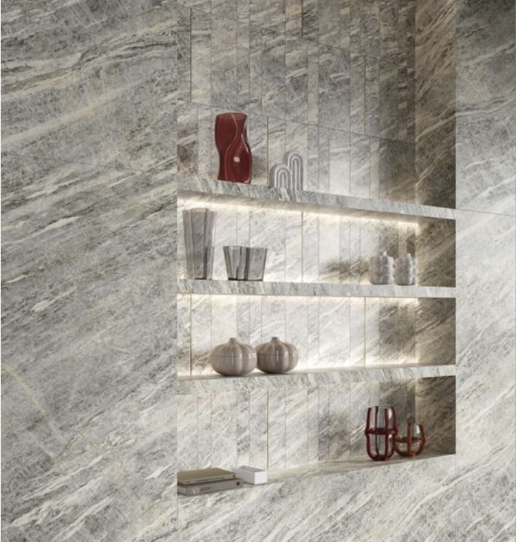 This iconic collection unveils 3 stunning marble-effect porcelain stoneware surfaces, each radiating beauty across large-format slabs. Complementing them is a refined selection of wall tiles, featuring exclusive new textures designed to elevate and enrich any space.