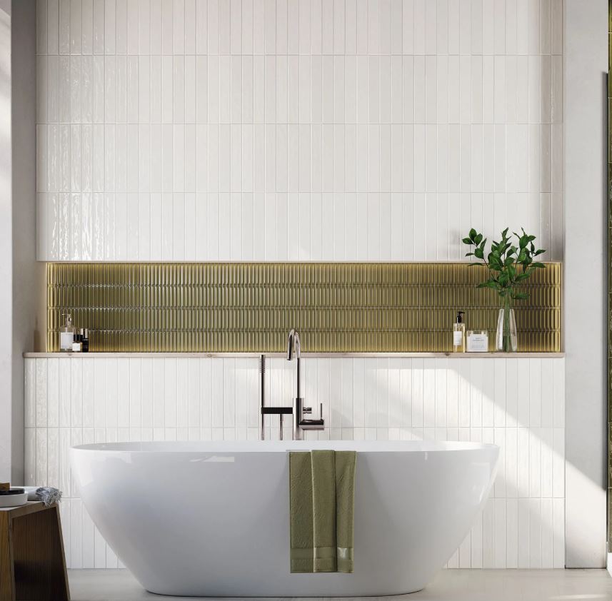 The Nairobi Arrow Collection by Vilar Albaro is a high-gloss ceramic wall tile inspired by the iconic candy bar shape. Its slim, elongated design forms a crisp vertical stack pattern that reflects light beautifully, creating a sleek and contemporary look. With its glossy finish and clean white tone, this collection brings timeless elegance to any wall application, perfect for adding modern character to bathrooms, kitchens, and accent walls.